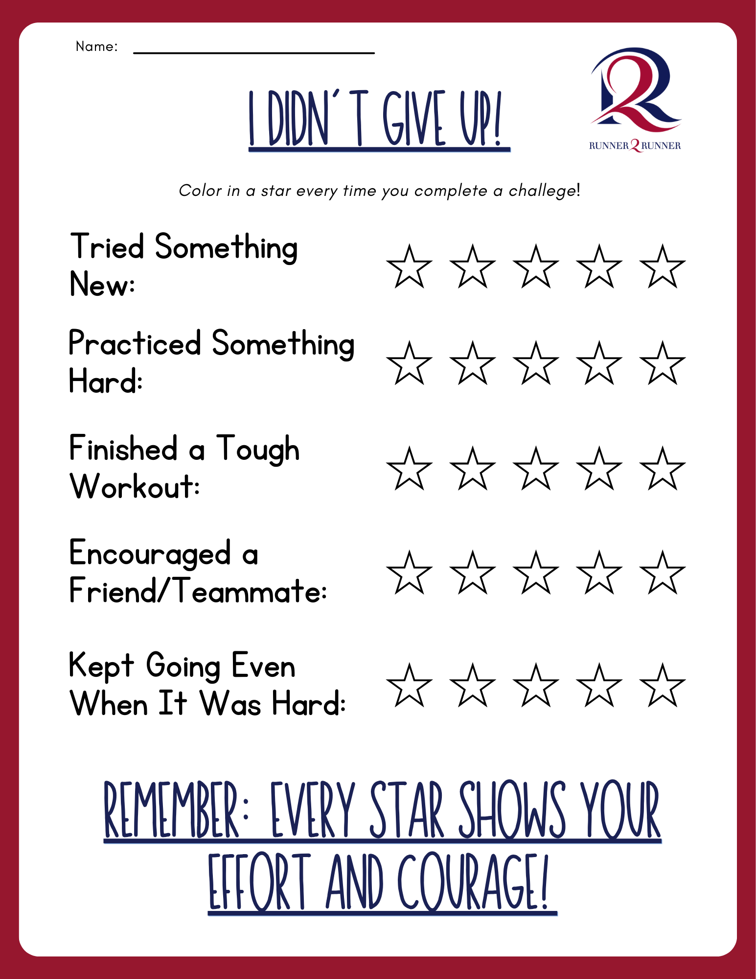 To help kids celebrate their effort, we created a simple printable called the “I Didn’t Give Up ” Tracker. Kids can color in a star each time they: